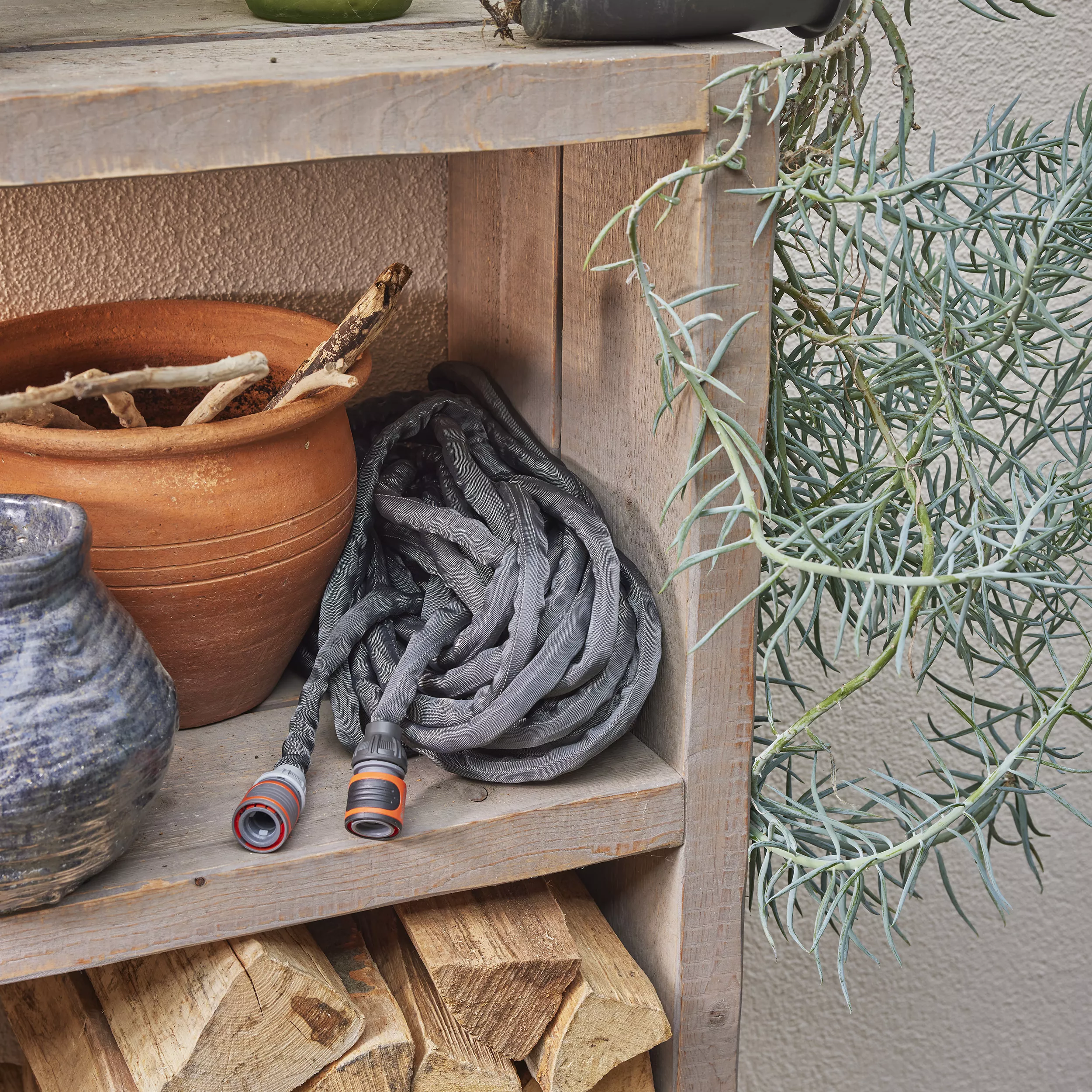 - Hose is up to 50 % lighter than conventional PVC hoses & can be stored in a space-saving way